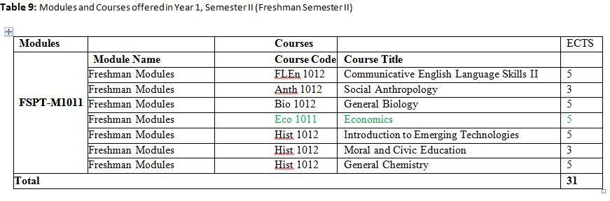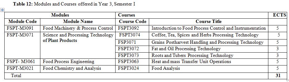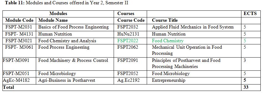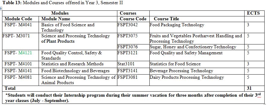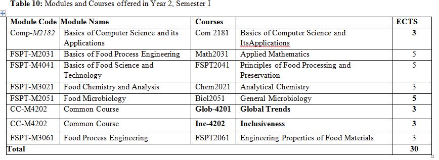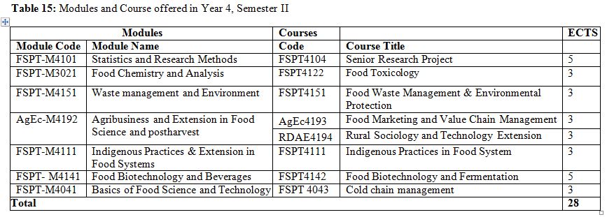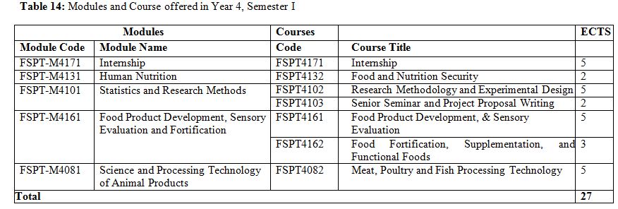 Food Science Course Breakdown