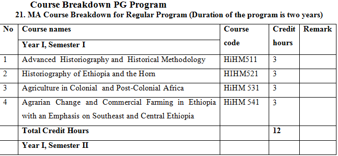 The history of Ethiopia in general and its Southeast and Central part in particular cannot be complete without the proper understanding of the socio-economic, religious and cultural history as well as heritages of its peoples, nations and nationalities. Such holistic understanding of the history of the people cannot be attained without a systematic study, interpretation and analysis of its past. Thus, the general objective of the graduate program is to produce qualified professionals specializing in the modern history of Ethiopia with an Emphasis on its Southeast and Central part.