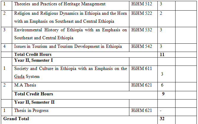 The MA program has the intention of engaging graduates in a thorough and systematic study and preservation of the socio-economic, religious and cultural history as well as heritages of the Southeast and Central Ethiopia in particular and Ethiopia in general during the modern period. At the end, the program assists graduates to get the required knowledge and skills in these aspects of historical and heritage management studies. Such historical knowledge and skills enable graduates to become professional employees and researchers in municipalities, Culture and Tourism Bureaus and Communication Offices, and teachers in the preparatory high schools and secondary schools in all over the country.