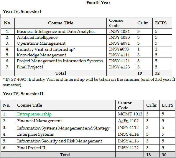 Information Systems Department Course